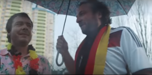 Propagační video ukazuje dva německé fotbalové fanoušky, kteří se podle videoreklamy dostanou z Německa do Moskvy a jsou překvapeni, že podmínky se liší od podmínek v Brazílii na posledním Světovém poháru.