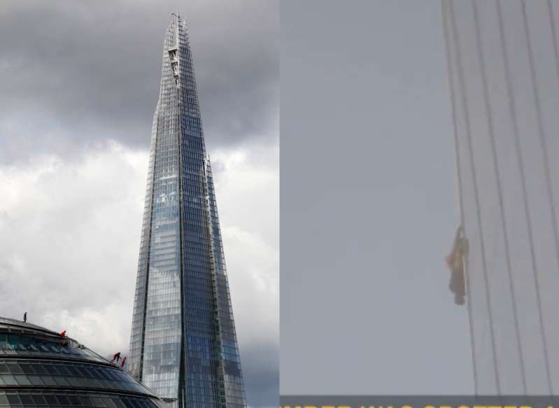 Ve videu zveřejněném na Twitteru, je viděn jako stoupá na 95 podlažní budovu – Shard s výškou 309 metrů – v londýnském Southwarku.