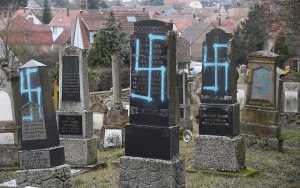 Vandalové posprejovali na desítky hrobů na židovském hřbitově ve východní Francii antisemitské graffiti.